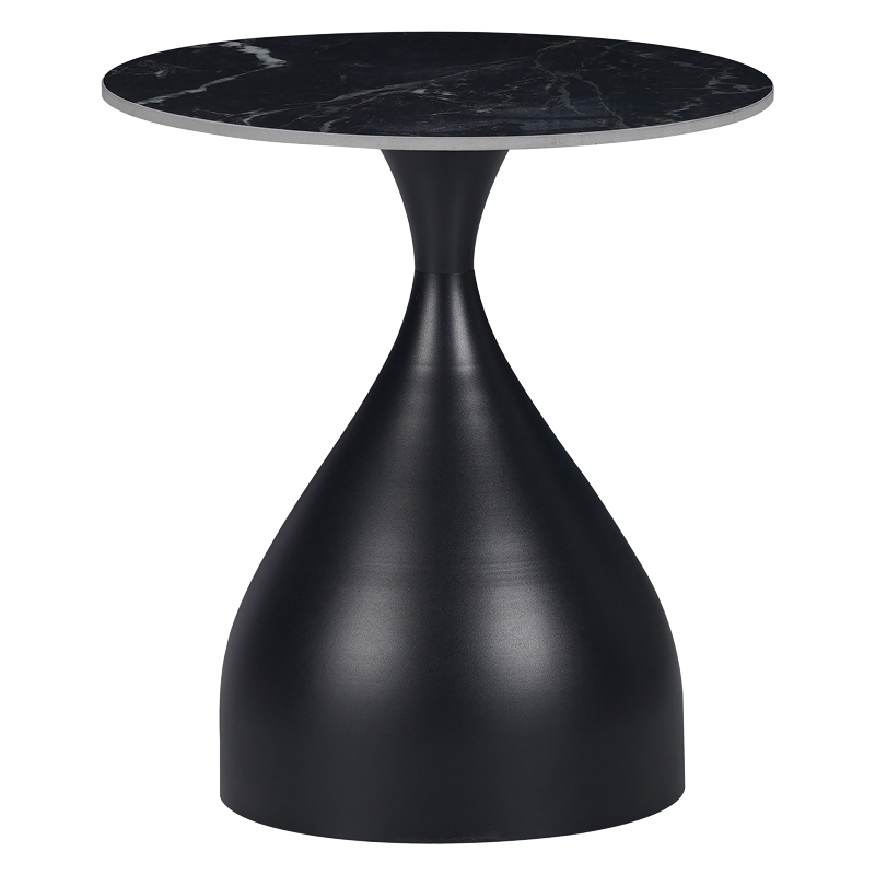 Βοηθητικά τραπέζια Kirkene Inart sintered stone σε απόχρωση μαύρο μαρμάρου με μαύρο μέταλλο 2τεμ