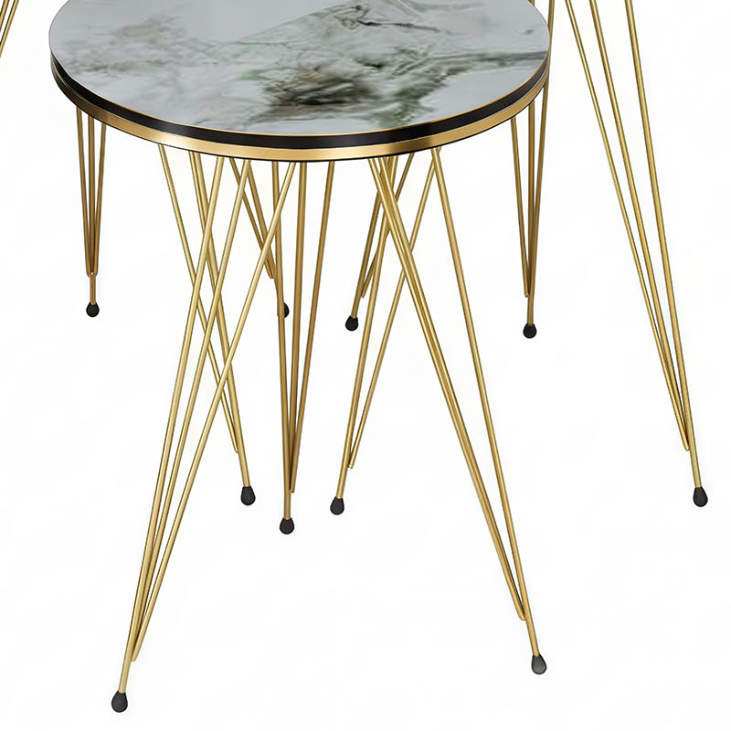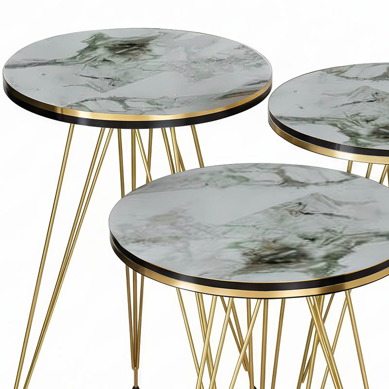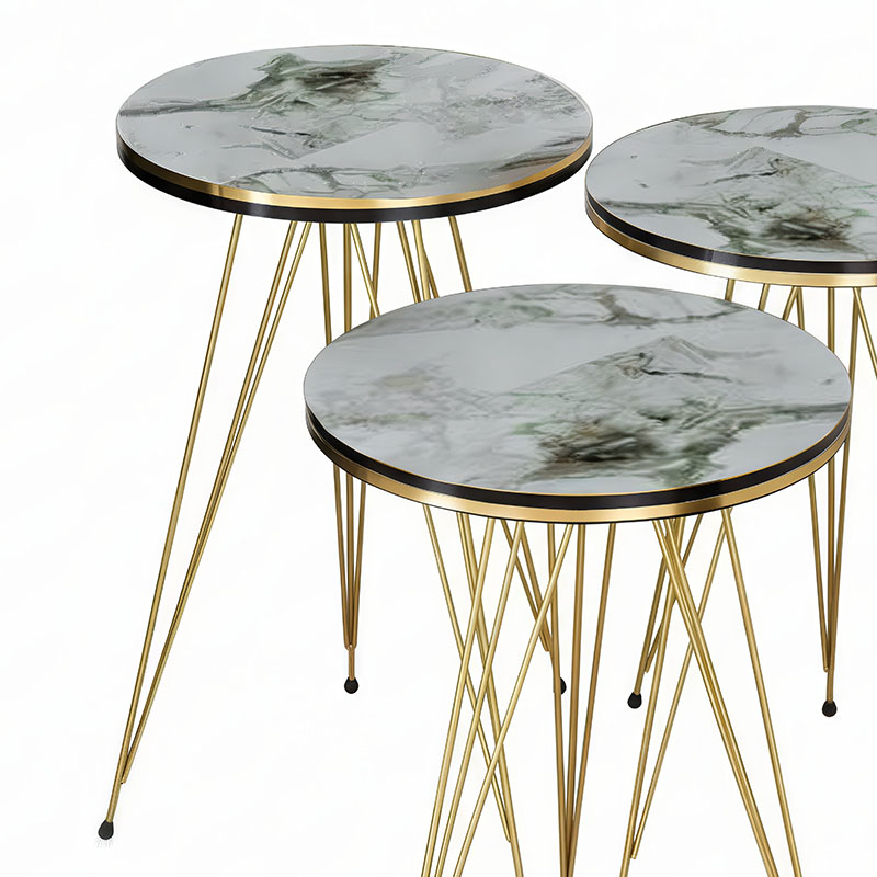 Βοηθητικά τραπέζια Wakmi pakoworld σετ 3τεμ λευκό μπεζ μαρμάρου μελαμίνης-χρυσό μέταλλο
