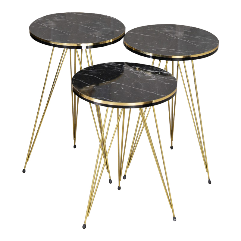 Βοηθητικά τραπέζια Wakmi pakoworld σετ 3τεμ μαύρο μαρμάρου μελαμίνης-χρυσό μέταλλο