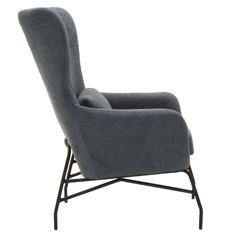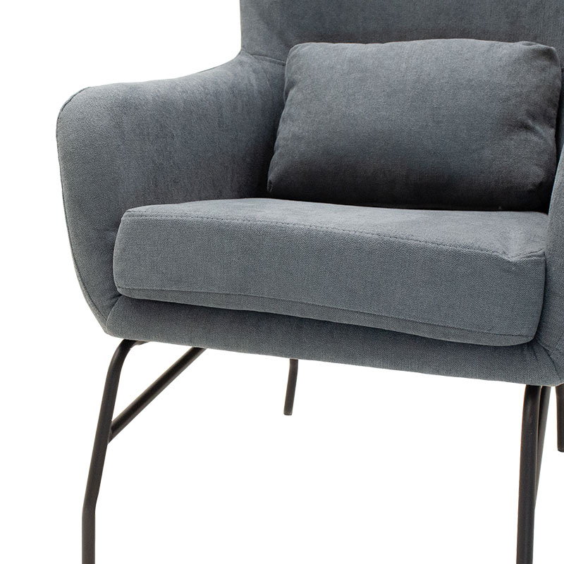 Μία πολυθρόνα μπερζέρα με διαχρονική πολυτέλεια, φτιαγμένη από μεταλλικό σκελετό και επενδυμένη από ύφασμα υψηλής ποιότητας σε χρώμα γκρι. Απολαύστε στιγμές χαλάρωσης σε μια εντυπωσιακή κατασκευή. Μπορεί να χρησιμοποιηθεί για οικιακή και επαγγελματική χρήση.