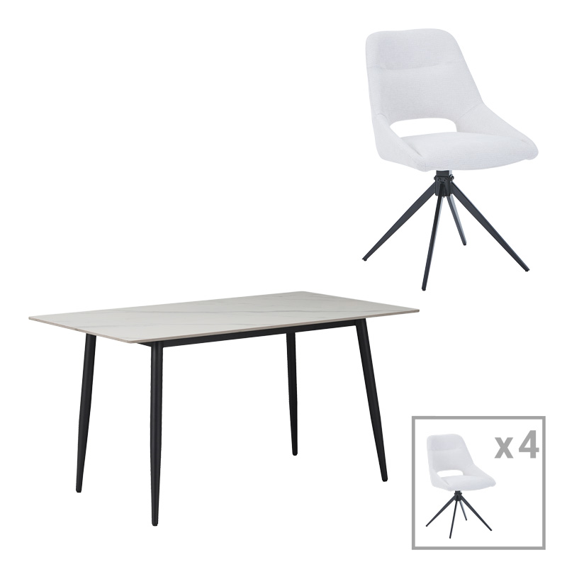 Τραπεζαρία Gustas-Luciano I pakoworld σετ 5τεμ λευκό μαρμάρου-κρεμ υφασμα 120x80x76εκ