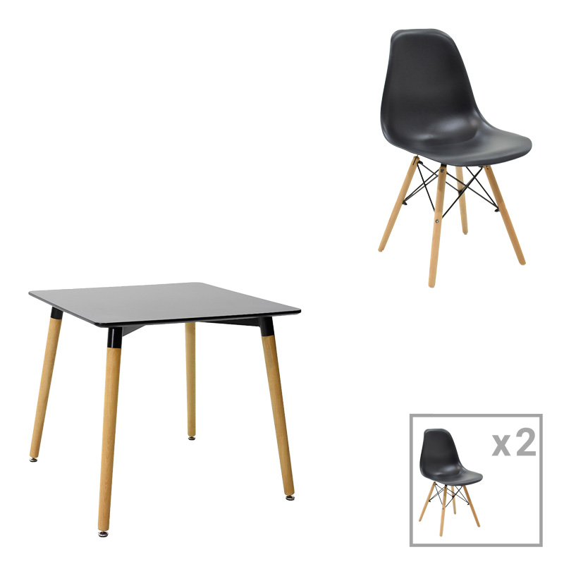 Ενα σετ τραπεζαρίας, με μοντέρνο design που συνδυάζει αρμονικά τη ποιότητα με τη λειτουργικότητα. Το μαύρο χρώμα, μαζί με την όψη ξύλου ζεσταίνει το χώρο και δημιουργεί μια εκλεπτυσμένη ατμόσφαιρα .Ιδανικό σετ για την τραπεζαρία, το σαλόνι, τη κουζίνα αλλά και για επαγγελματική χρήση.