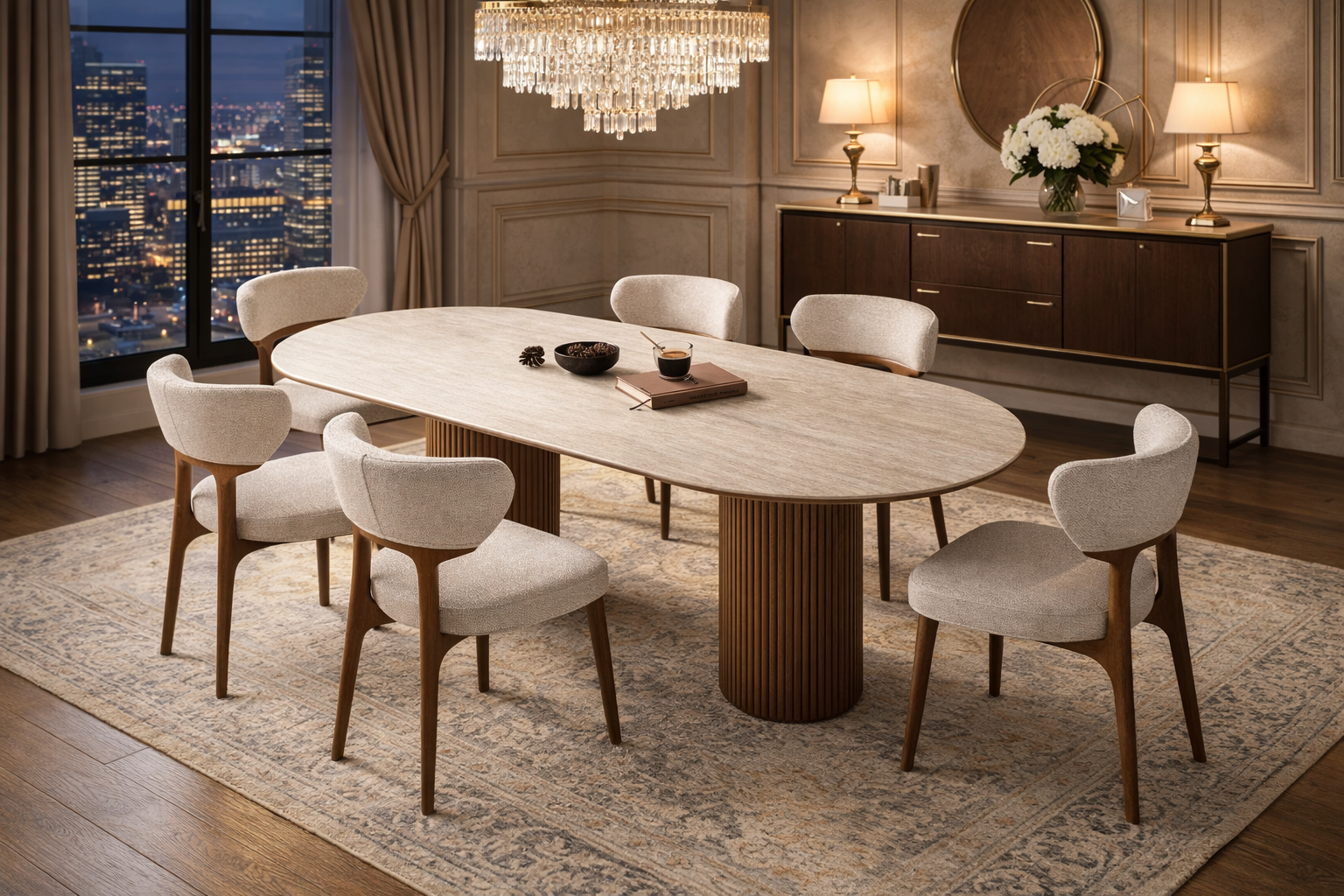Το σετ τραπεζαρίας Ivonne συμπεριλαμβάνει τραπέζι δείπνου και έξι (6) καρέκλες.