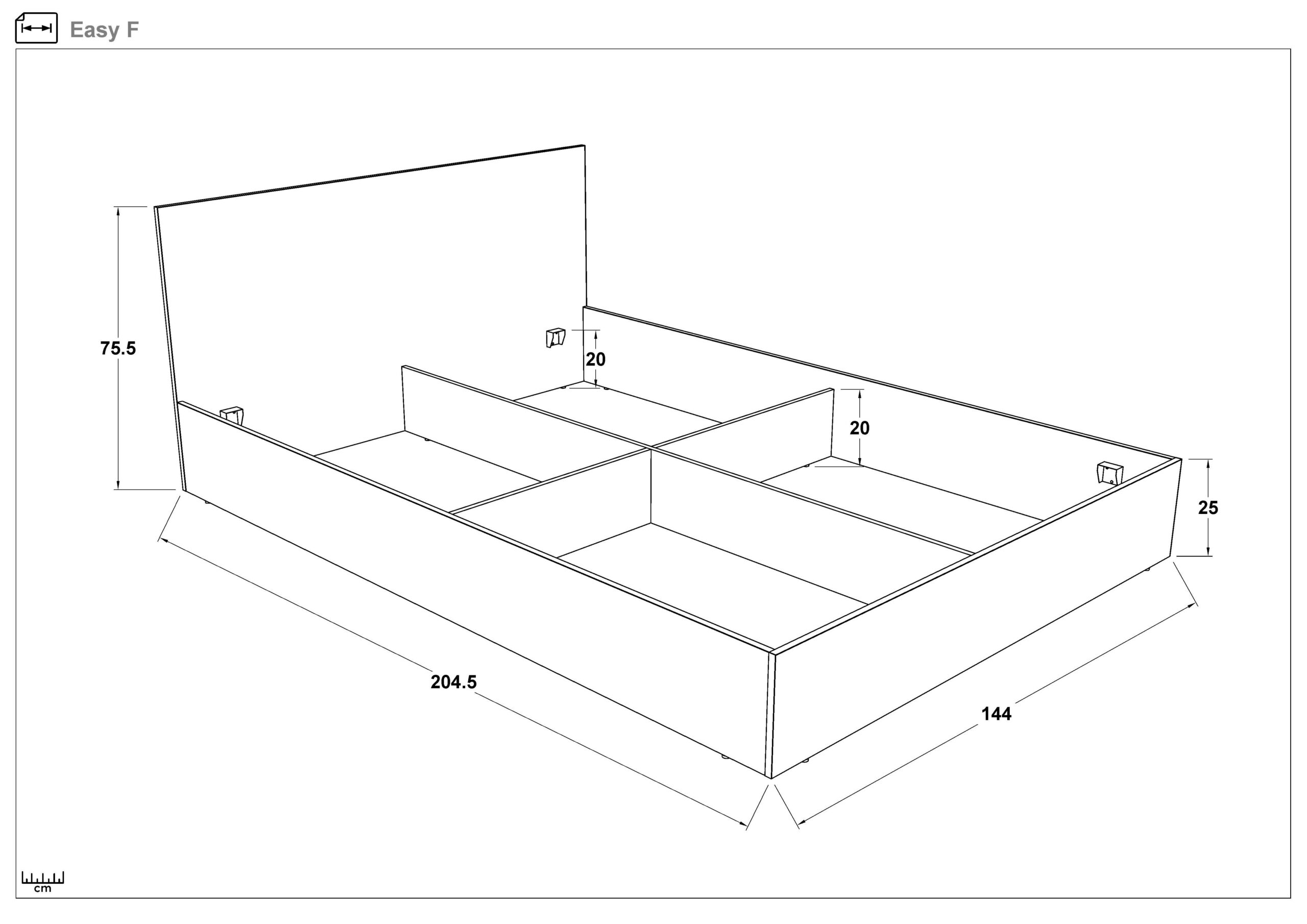 Διαστάσεις κρεβατιού: Μήκος: 204 Ύψος: 90 Πλάτος: 144 εκ.