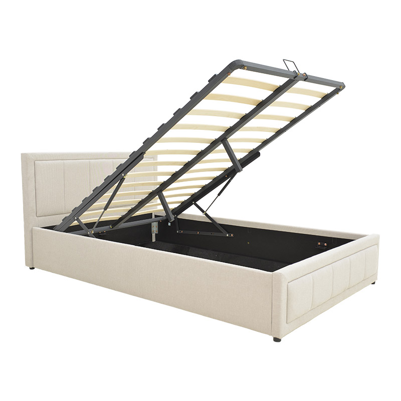 Διαθέτει έναν εύχρηστο μηχανισμό ανύψωσης του στρώματος, ο οποίος αποκαλύπτει έναν ευρύχωρο αποθηκευτικό χώρο από κάτω. Αυτό καθιστά εύκολη την τακτοποίηση κλινοσκεπασμάτων, μαξιλαριών, ρούχων εκτός εποχής ή άλλων αντικειμένων, συμβάλλοντας στην οργάνωση και την τάξη του χώρου.