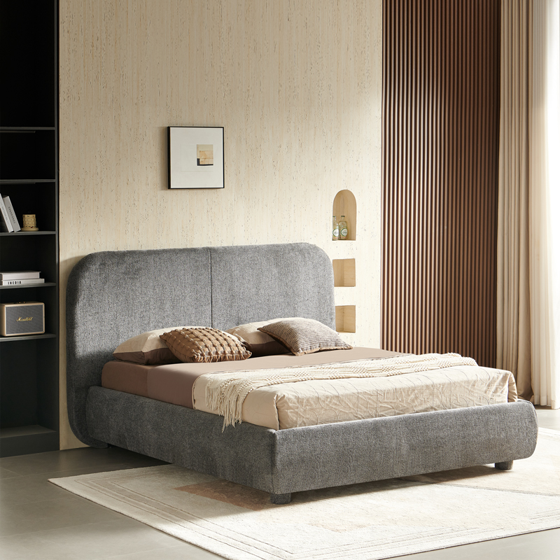 - Στήριξη σε πόδια από ξύλο plywood με επένδυση υφάσματος ιδίου χρώματος του κρεβατιού.