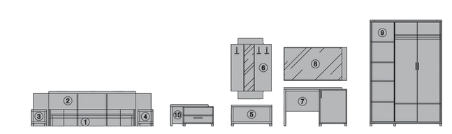 Σετ Κρεβατοκάμαρας 9 τεμαχίων, Rhodes, 172.5×196.5×33 εκ., Genomax