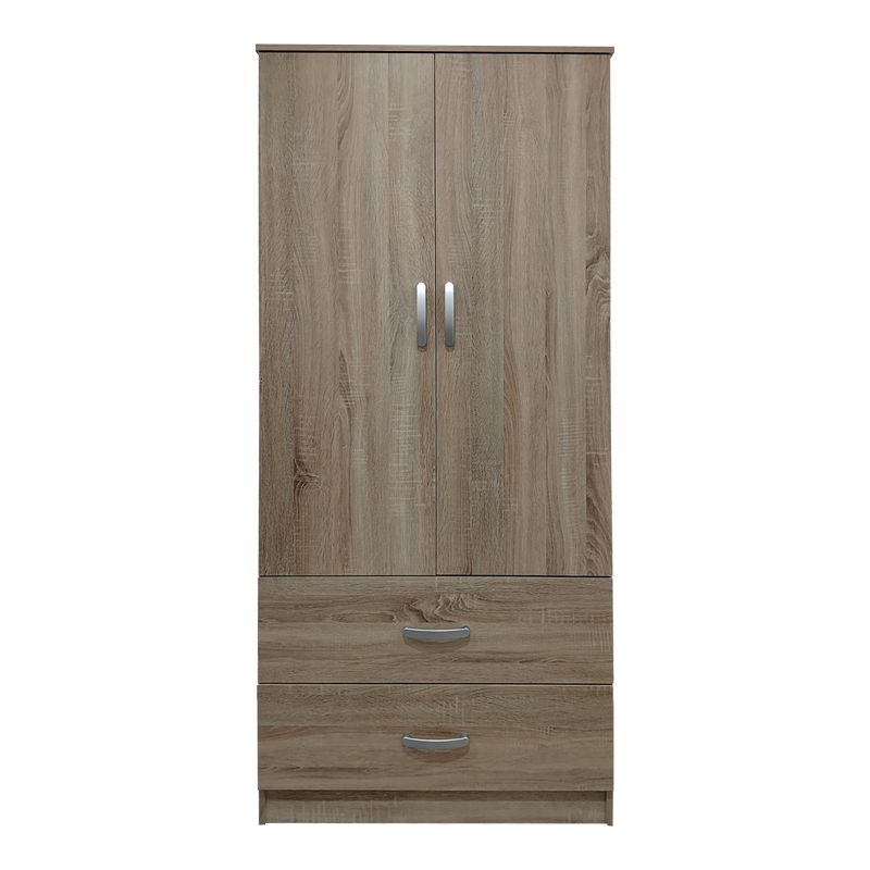 - Περιλαμβάνει δύο πόρτες, εσωτερικά φέρει ράγα για κρεμάστρες ενώ κάτω φέρει δύο μεγάλα συρτάρια για την αποθήκευση ρούχων και αξεσουάρ.
