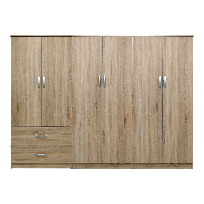 - Περιλαμβάνει εξι πόρτες, εσωτερικά φέρει ράγα για κρεμάστρες ενώ κάτω φέρει δύο μεγάλα συρτάρια για την αποθήκευση ρούχων και αξεσουάρ.