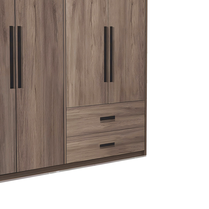 Ντουλάπα ρούχων Edritte pakoworld τετράφυλλη με συρτάρια ανοιχτό καρυδί μελαμίνη 160x52x195εκ