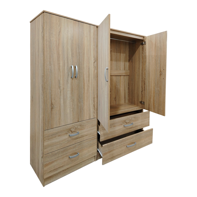 - Περιλαμβάνει τέσσερις πόρτες, εσωτερικά φέρει ράγα για κρεμάστρες ενώ κάτω φέρει τέσσερα μεγάλα συρτάρια για την αποθήκευση ρούχων και αξεσουάρ.