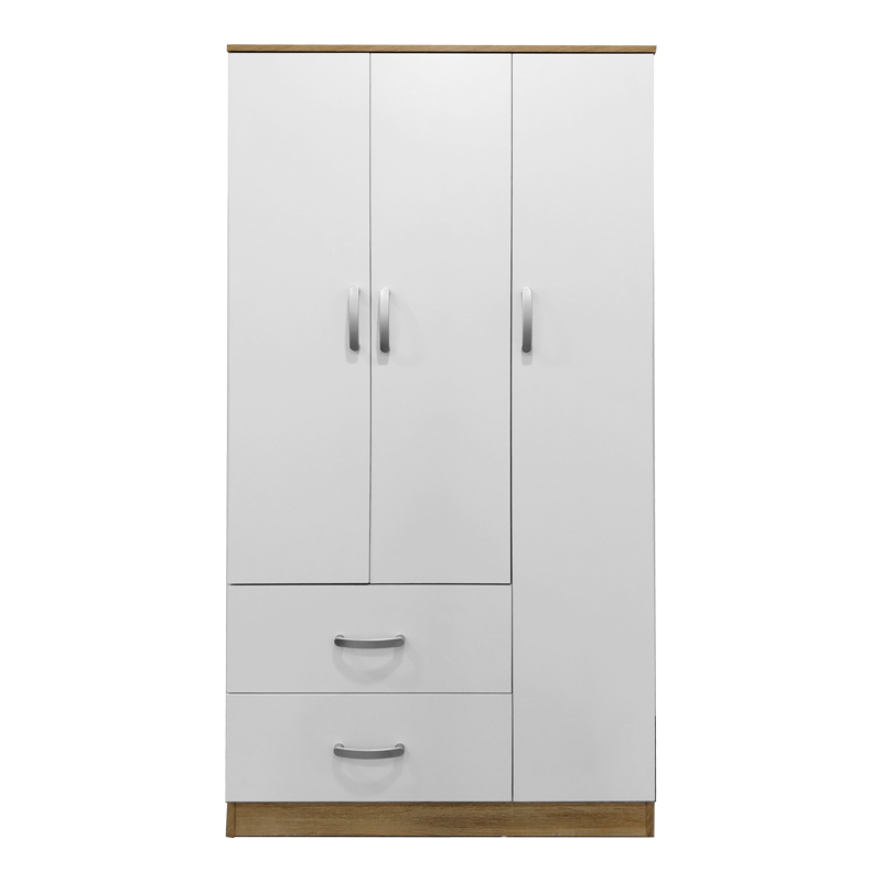 - Περιλαμβάνει τρεις πόρτες, εσωτερικά φέρει ράγα για κρεμάστρες και ράφια ενώ κάτω φέρει δύο μεγάλα συρτάρια για την αποθήκευση ρούχων και αξεσουάρ.