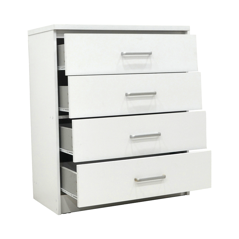 - Φέρει τέσσερα μεγάλα συρόμενα συρτάρια σε σε λευκό. Υψος συρταριού εξωτ: 20εκ -εσωτ 15εκ