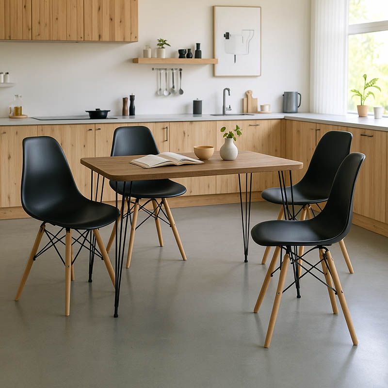 - Στήριξη σε 4 ενισχυμένα ξύλινα πόδια οξιάς, ενοποιημένα με μαύρους μεταλλικούς βραχίονες, εξαιρετικής ποιότητας και αντοχής στο βάρος όσο και στο χρόνο.