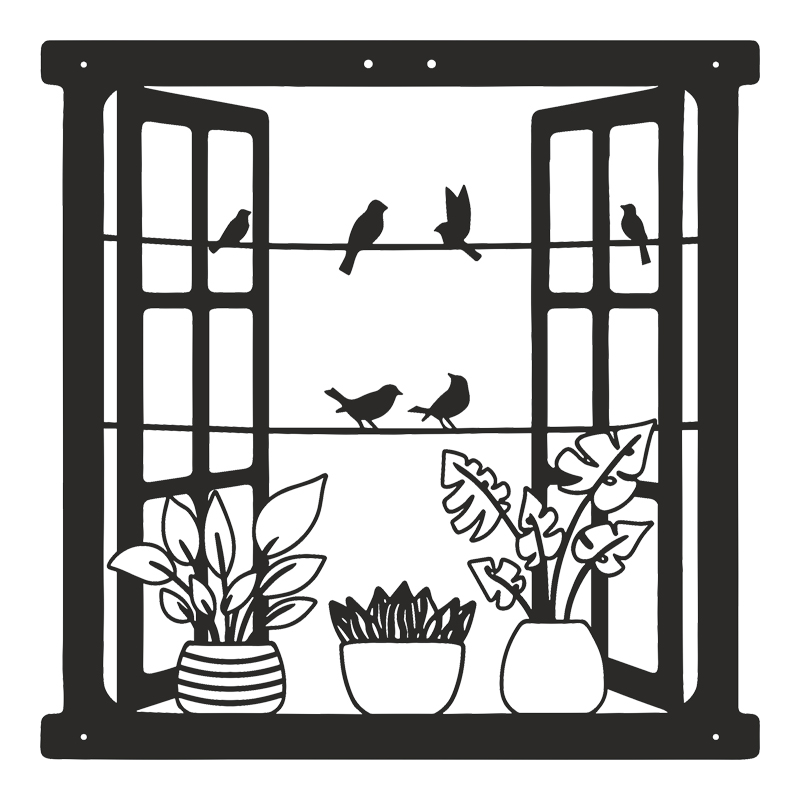 Μεταμορφώστε την ατμόσφαιρα του δωματίου σας με το διακοσμητικό Windo, ένα έργο που συνδυάζει τη γεωμετρική συμμετρία με την αέρινη γοητεία των πουλιών και των φυτών. Αυτό το διακοσμητικό δημιουργεί την ψευδαίσθηση ενός ανοιχτού παραθύρου, προσφέροντας μια αίσθηση βάθους και ζωντάνιας σε κάθε εσωτερικό ή εξωτερικό χώρο.