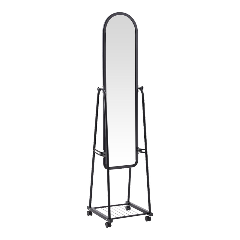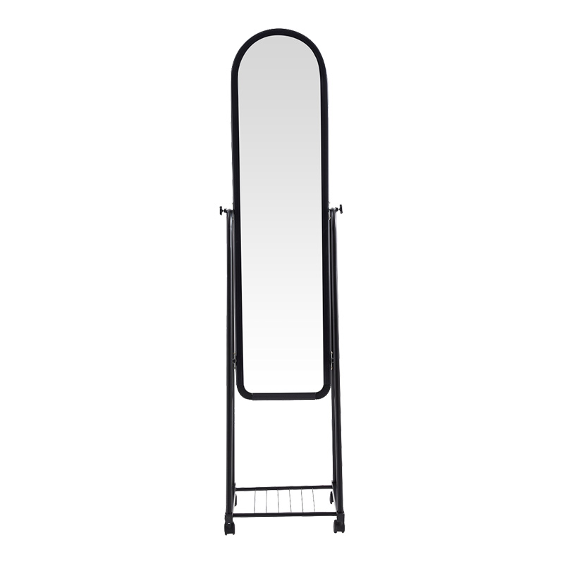 Η στιβαρή κατασκευή εξασφαλίζει ανθεκτικότητα, ενώ οι ενσωματωμένες ρόδες επιτρέπουν την εύκολη μετακίνηση του καθρέφτη ανάλογα με τις ανάγκες σας. Επιπλέον, το πρακτικό ράφι αποθήκευσης στη βάση παρέχει έναν βολικό χώρο για την οργάνωση μικροαντικειμένων, όπως καλλυντικά, αξεσουάρ ή ακόμα και μικρά διακοσμητικά στοιχεία.