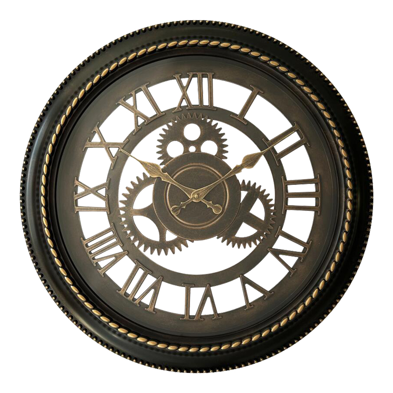 Ρολόι τοίχου Ferm Inart σε μαύρη αντικέ και χρυσή απόχρωση Φ61×6εκ