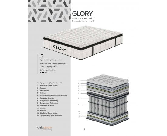 Στρώμα Glory διπλό 160/200/37 εκ.,RELIEF