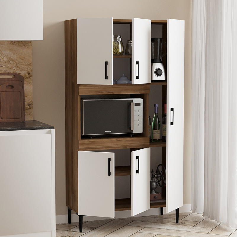 Ντουλάπα κουζίνας Defne pakoworld χρώμα λευκό-καρυδί 89×37.5×160εκ