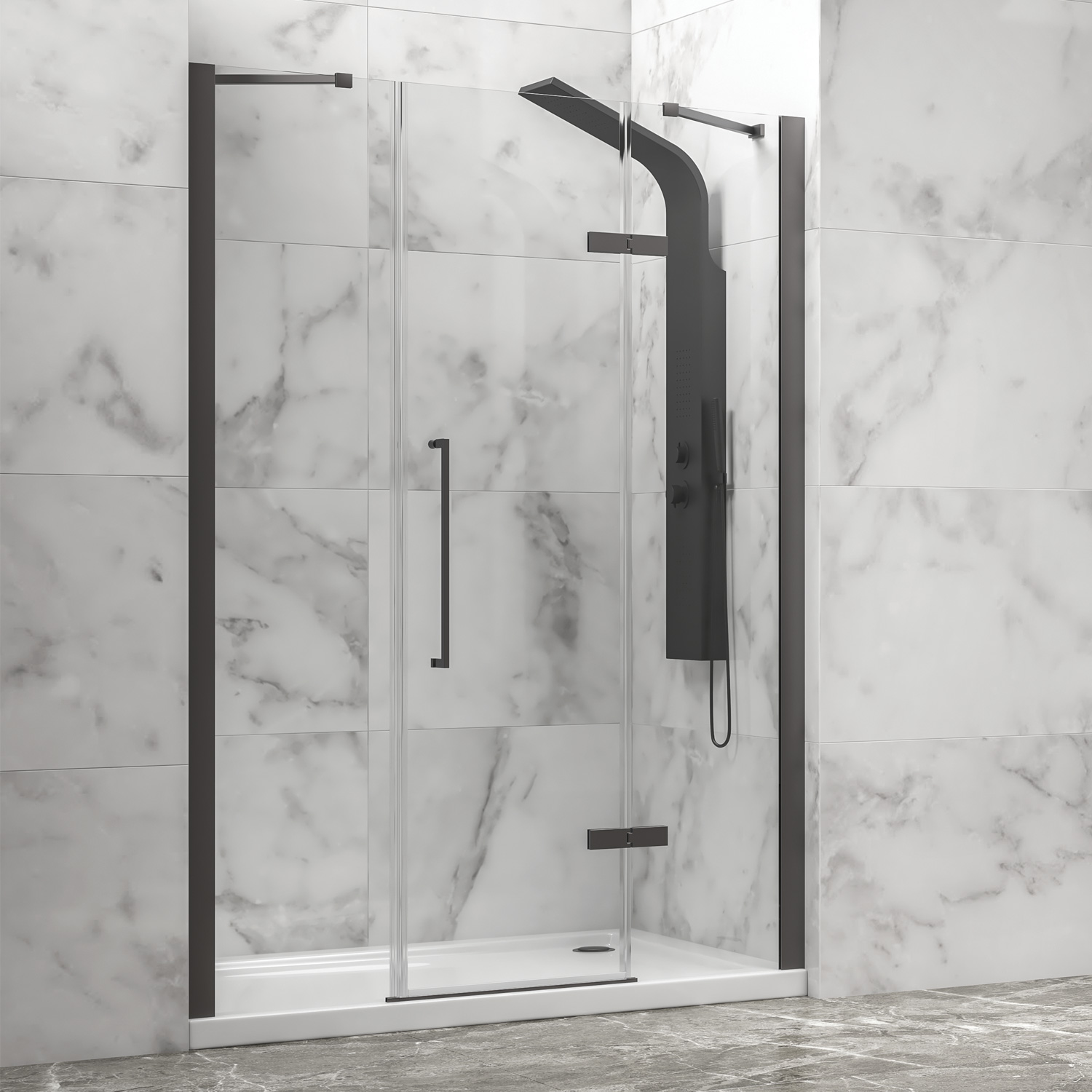 Καμπίνα από τοίχο σε τοίχο με διάφανο κρύσταλλο TINOS 600 Gun Metal KARAG 175x200cm