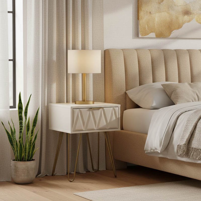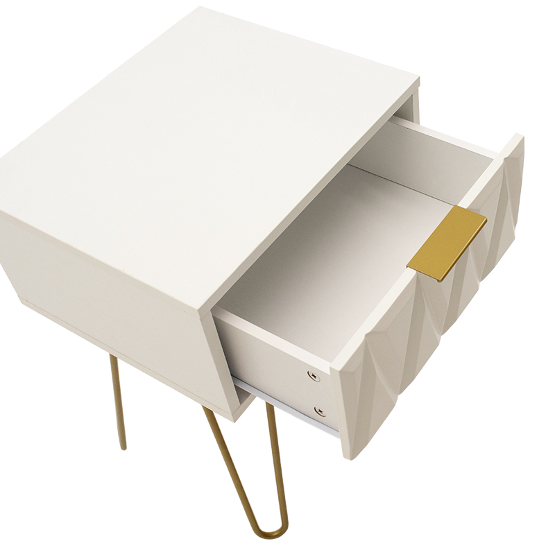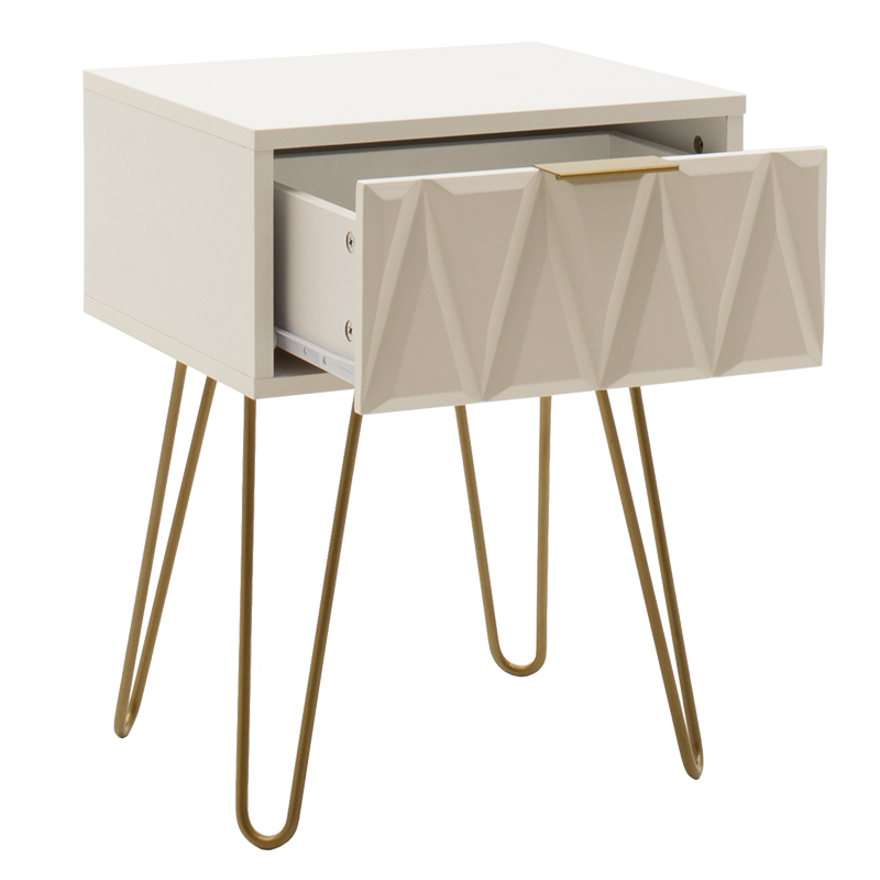 Κομοδίνο Isla pakoworld χρώμα λευκό painting-χρυσό 42x35x55εκ