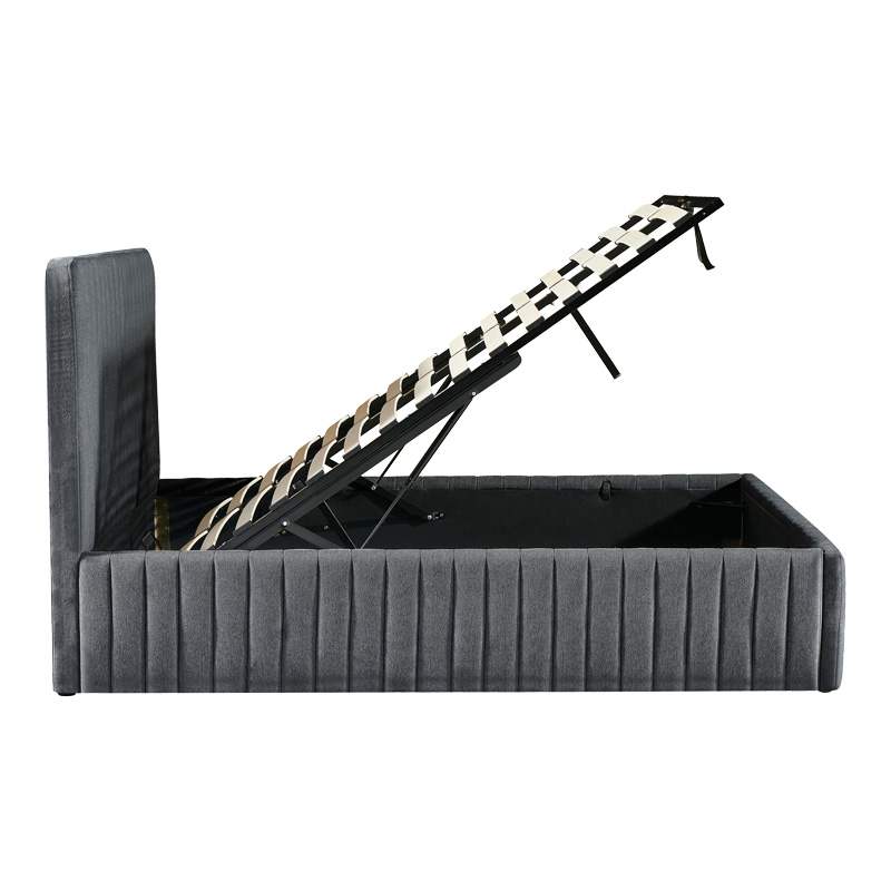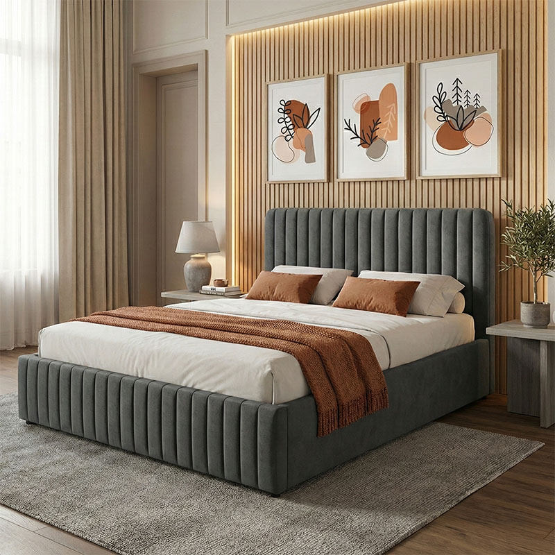 Κρεβάτι διπλό Zilin pakoworld ύφασμα ανθρακί 160×200εκ