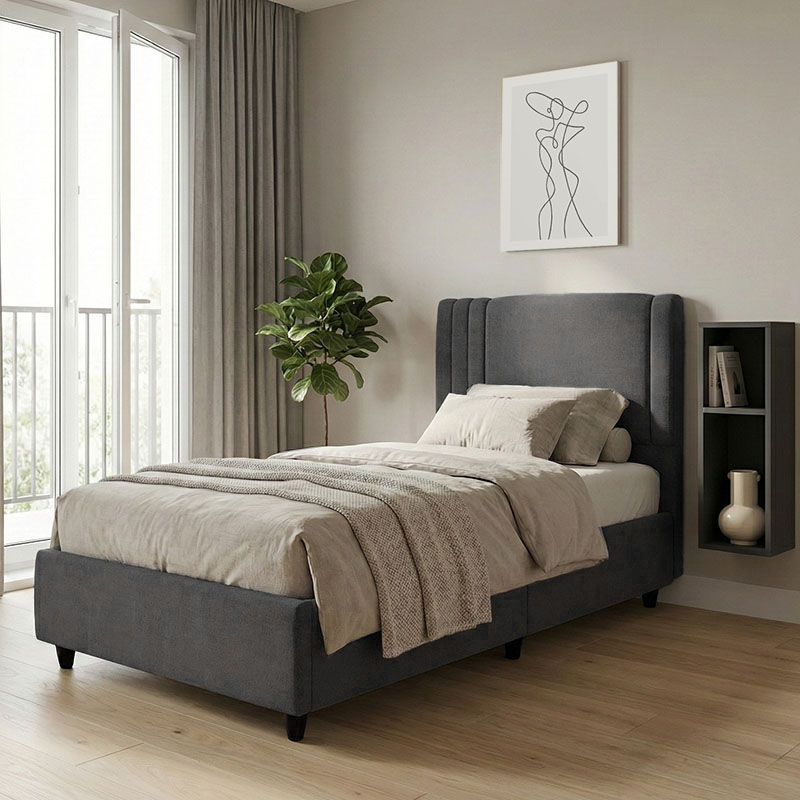 Κρεβάτι Lineo pakoworld μονό με αποθηκευτικό χώρο ανθρακί 120×200εκ