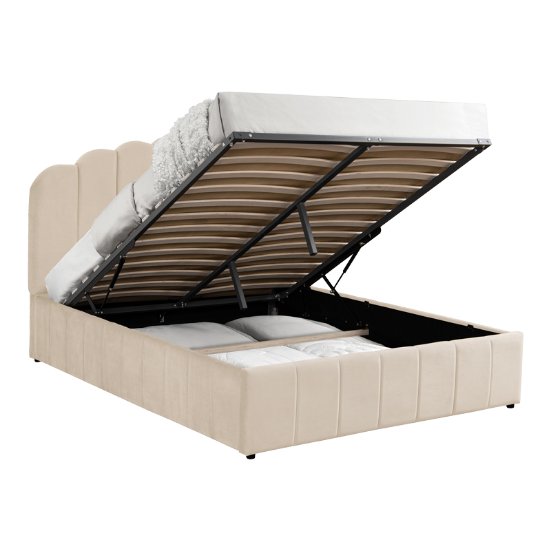 - Έχει μηχανισμό με αμορτισέρ που ανασηκώνει τον σομιέ προσφέροντας μεγάλο αποθηκευτικό χώρο, η βάση του οποίου είναι ντυμένη με αποσπώμενο ύφασμα.