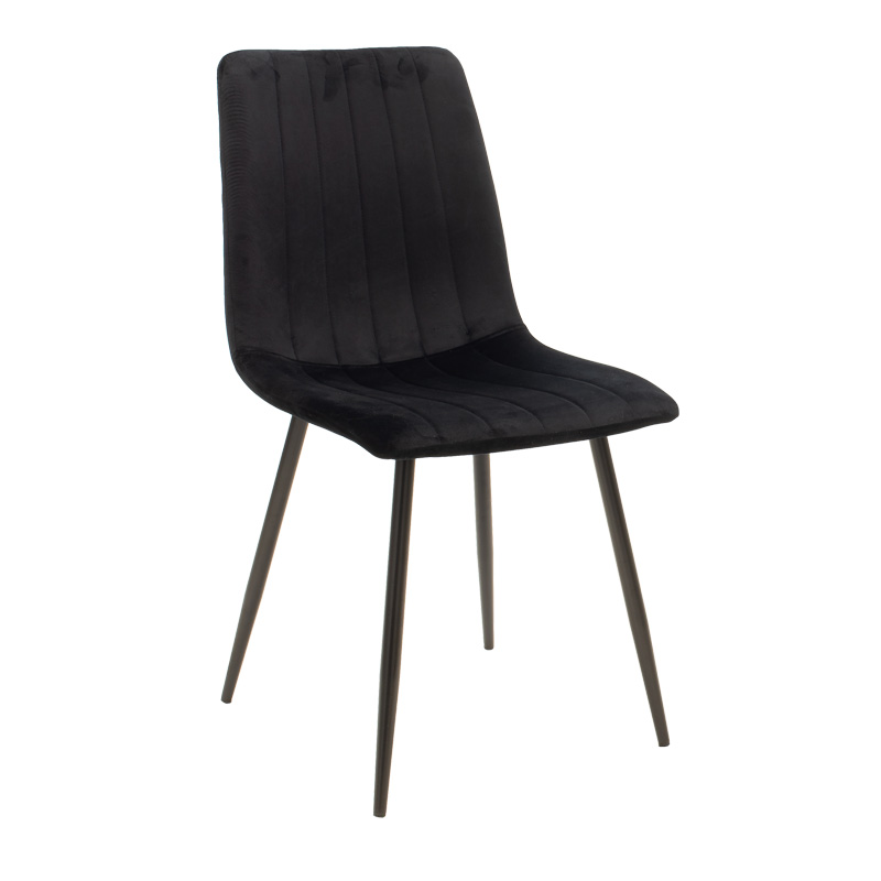 Καρέκλα Noor pakoworld γκρι βελούδο με πόδι μετάλλου σε μαύρη απόχρωση 44x53x86εκ