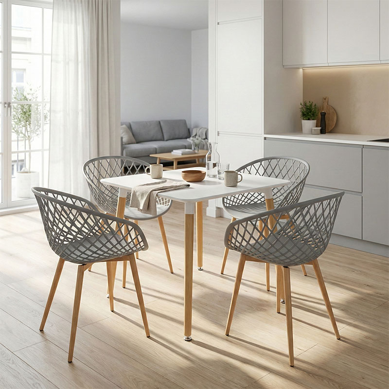 Ένα σετ τραπεζαρίας minimal αισθητικής που συνδυάζει αρμονικά το πρωτοποριακό design με τα πιο ανθεκτικά υλικά, κατάλληλο για να αναδείξει το ακόμη και το πιο μικρο χώρο.