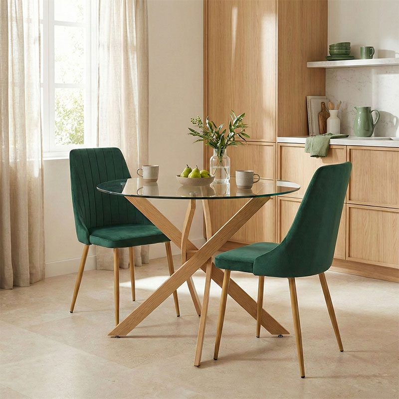 Τραπεζαρία με Καρέκλες Jelour Σάπιο Μήλο και Τραπέζι Antoro Γυαλί Φ100x75 Σετ 5τεμ Original price was: 218,00€.Η τρέχουσα τιμή είναι: 196,20€.
