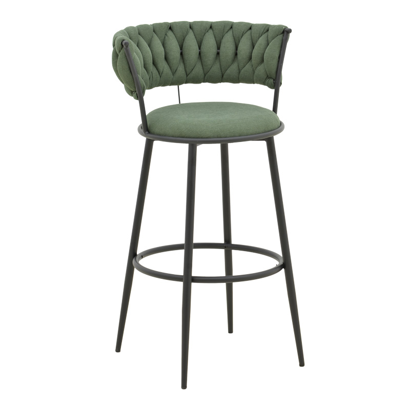 Αναβαθμίστε τον χώρο σας με το σκαμπό μπαρ Alkia, έναν συνδυασμό κομψότητας και άνεσης. Η χαρακτηριστική πλέξη στο πίσω μέρος προσθέτει μια ενδιαφέρουσα και οπτική γοητεία, ενώ το άνετο κάθισμα υπόσχεται ευχάριστες στιγμές χαλάρωσης. Στηριγμένο σε λεπτά, αλλά σταθερά μεταλλικά πόδια σε μαύρο ματ φινίρισμα, το σκαμπό μπαρ Alkia διαθέτει επίσης ένα πρακτικό στήριγμα ποδιών για επιπλέον άνεση.