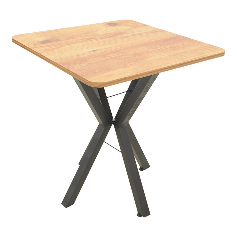 Τραπέζι Arenya pakoworld φυσική απόχρωση με μαύρα μεταλλικά πόδια 70x70x72εκ