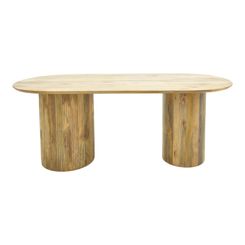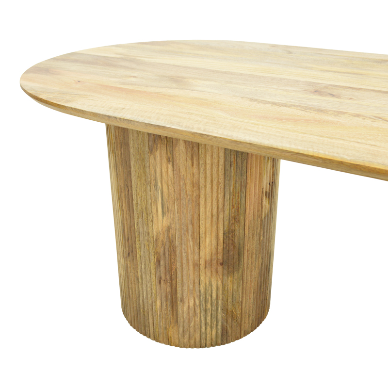 Δημιουργήστε έναν χώρο υψηλής αισθητικής με αυτό το επιβλητικό τραπέζι τραπεζαρίας Flute. Ο σχεδιασμός της βασίζεται σε δύο στιβαρούς, ραβδωτούς κυλινδρικούς πυλώνες που στηρίζουν μια κομψή οβάλ επιφάνεια, προσφέροντας μια μοναδική αίσθηση σταθερότητας και ρυθμού στον χώρο. Προσφέρει άνεση και στυλ, αποτελώντας το κεντρικό σημείο αναφοράς για κάθε σύγχρονη τραπεζαρία.