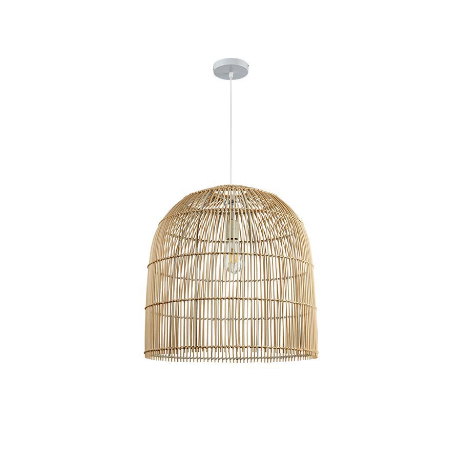 Κρεμαστό μονόφωτο φωτιστικό κατασκευασμένο από rattan σε φυσικό χρώμα.