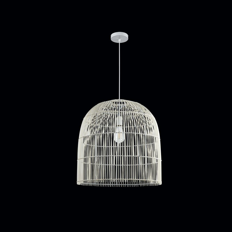 Κρεμαστό μονόφωτο φωτιστικό κατασκευασμένο από rattan σε λευκό χρώμα.