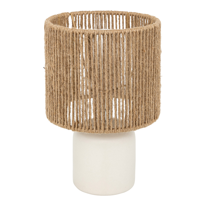 Φωτίστε τον χώρο σας με μια ζεστή, φυσική λάμψη και προσθέστε μια πινελιά boho chic με αυτό το υπέροχο επιτραπέζιο φωτιστικό. Η συμπαγής, λιτή βάση του σε λευκή απόχρωση συμπληρώνεται τέλεια από το κυλινδρικό αμπαζούρ, το οποίο είναι περίτεχνα τυλιγμένο με σχοινί.