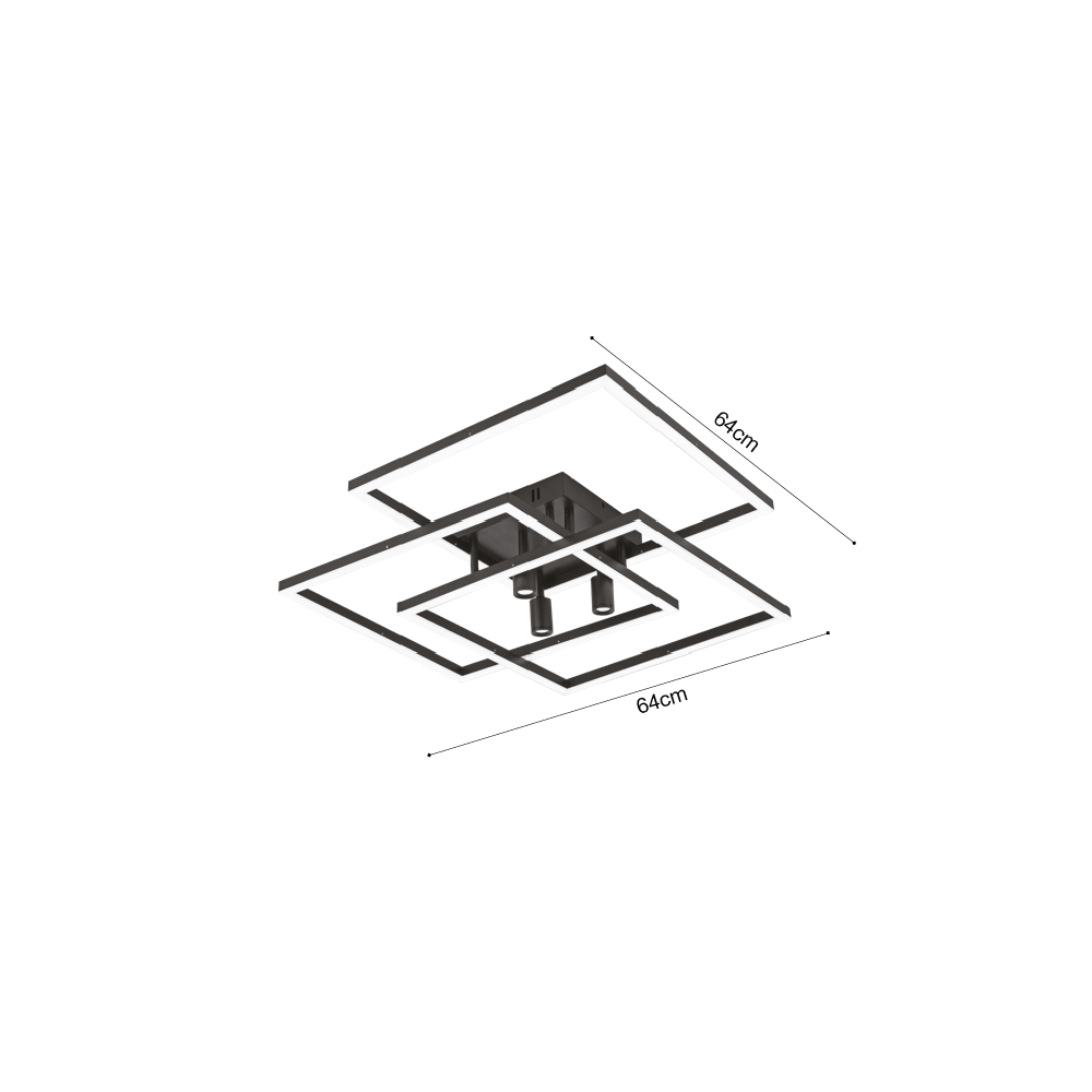 Πρόκειται για ένα μίνιμαλ φωτιστικό οροφής σε μαύρο απόχρωση κατασκευασμένο από μέταλλο. Στην επιφάνεια βρίσκεται λευκό ακρυλικό υλικό που καλύπτει τον φωτισμό του, ο οποίος μπορεί να μεταβληθεί από 3000Κ έως 6000Κ με τον διακόπτη που υπάρχει στην βάση του, επιτυγχάνοντας το επιθυμητό αποτέλεσμα.