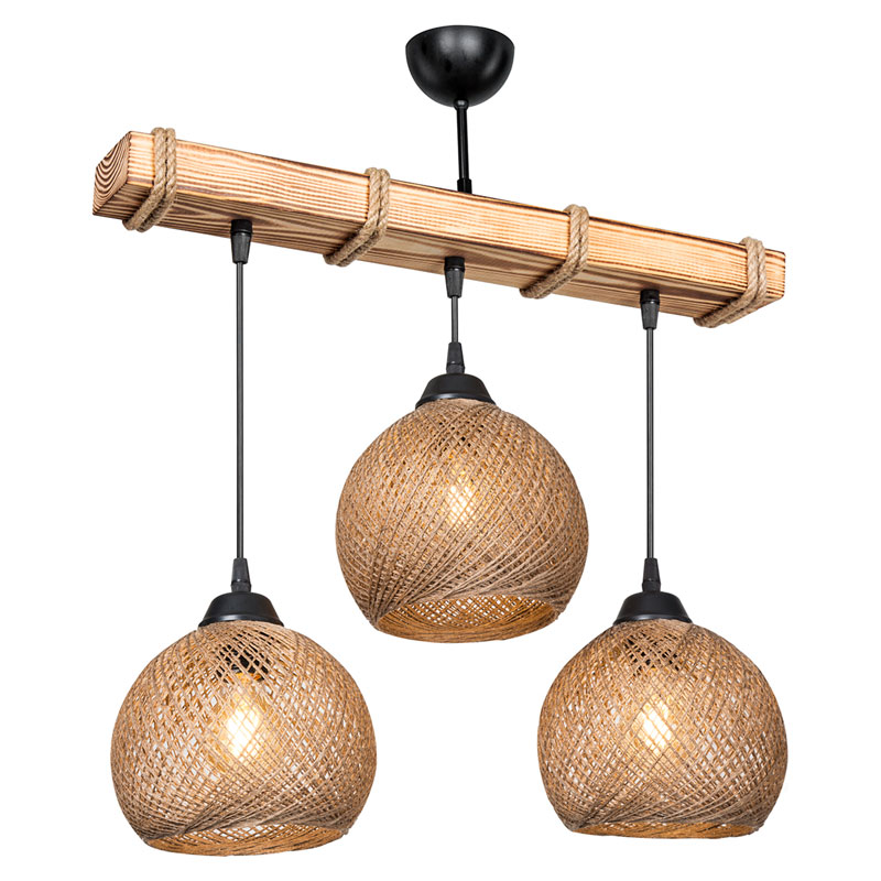 • Περιμετρικά του ξύλου φέρει σχοινί που προσθέτει μία boho πινελιά στο φωτιστικό και απογειώνει το αισθητικό αποτέλεσμα.