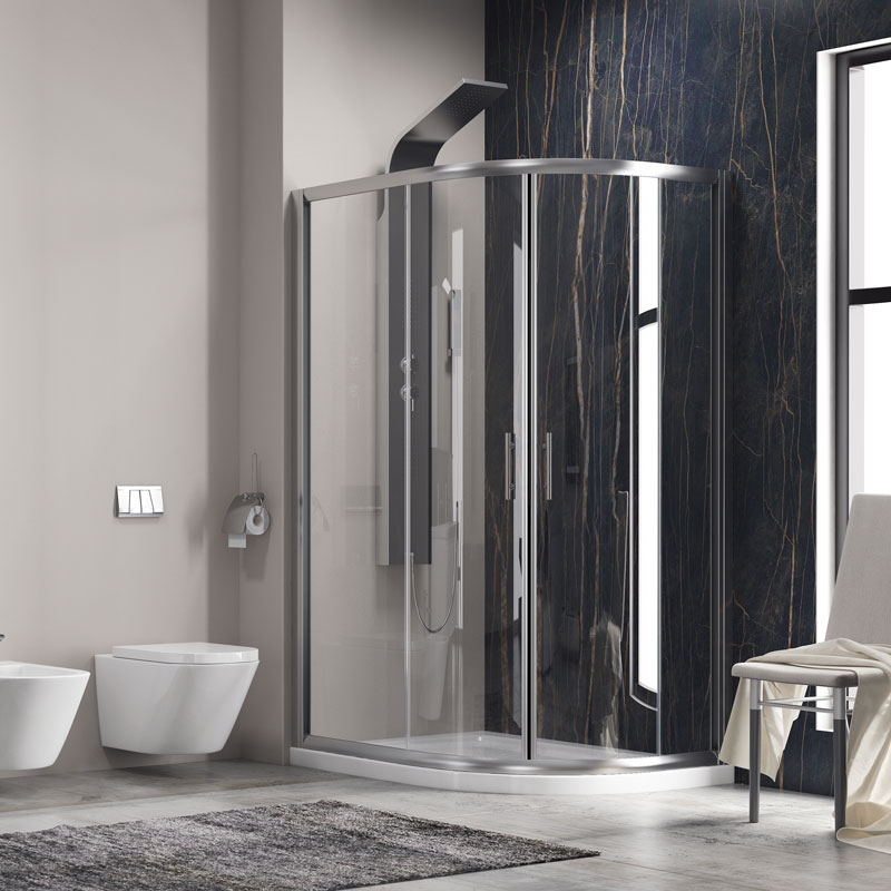 Καμπίνα ασύμμετρη ημικυκλική με διάφανο κρύσταλλο FLORA 650 Cromo KARAG 80x100x190cm