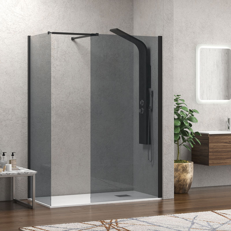 Σταθερά διαχωριστικά ντουζιέρας με fume κρύσταλλο WALKIN 2 Black KARAG 120x200cm