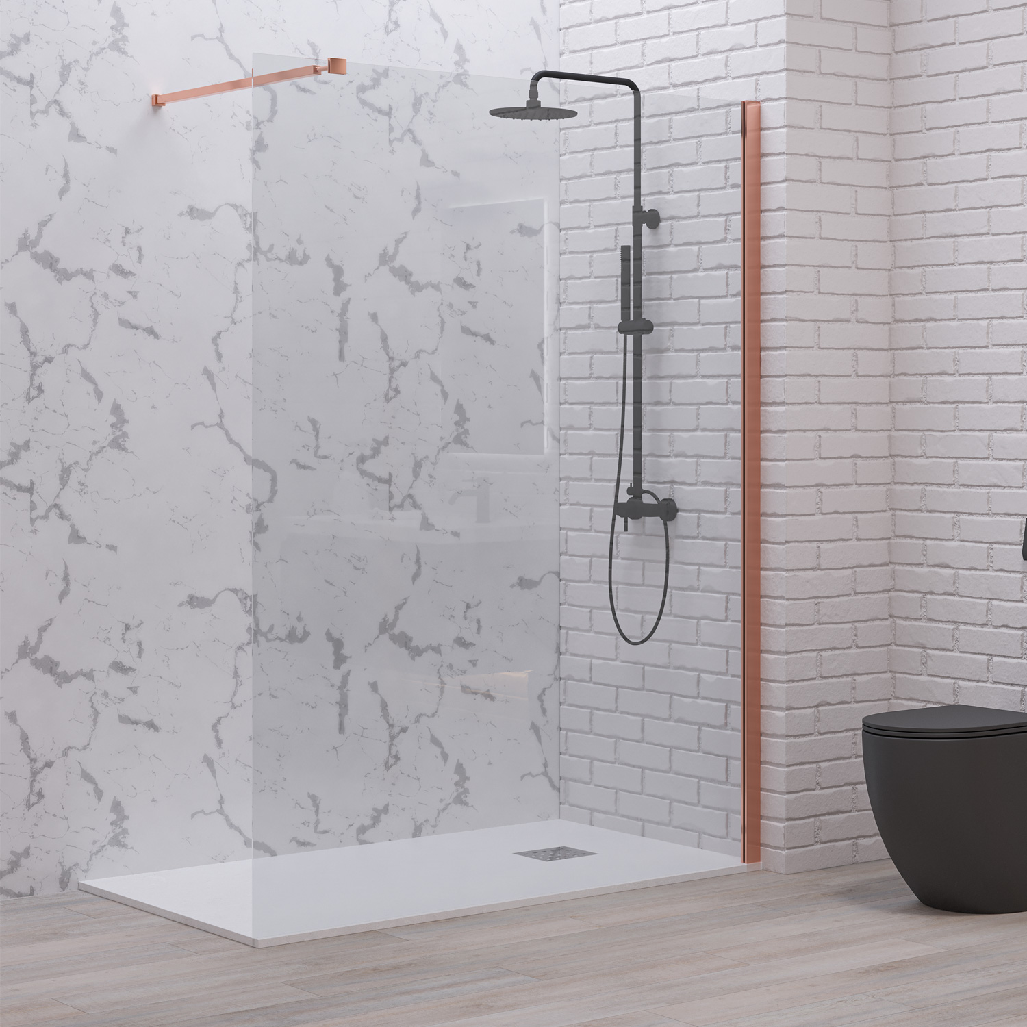 Σταθερό διαχωριστικό ντουζιέρας με διάφανο κρύσταλλο WALKIN 1 Rose Gold KARAG 150x200cm