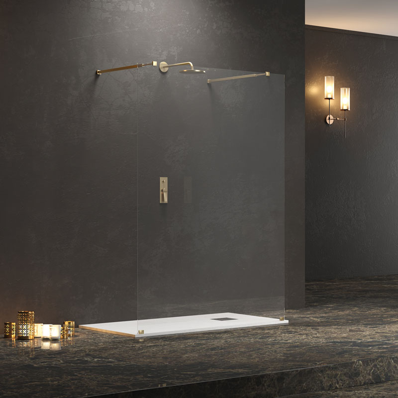 Σταθερό διαχωριστικό ντουζιέρας με διάφανο κρύσταλλο WALKIN 3 Gold KARAG 158x200cm