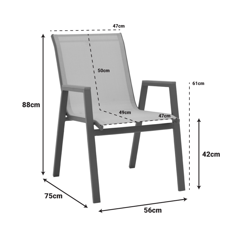- Σταθερός σκελετός από αλουμίνιο και ύφασμα textilene.
