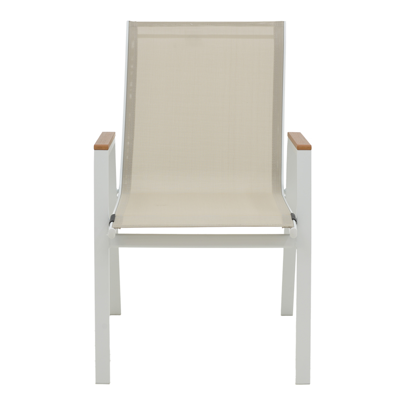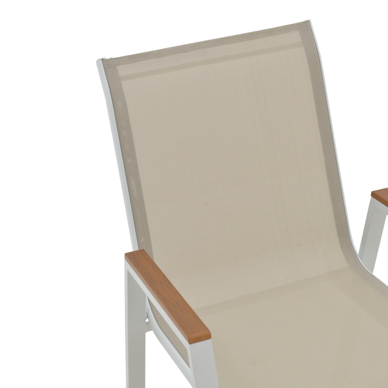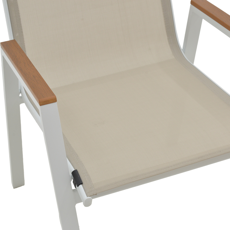 - Textilene: Το textilene είναι ένα εξαιρετικά ανθεκτικό υλικό που χρησιμοποιείται ευρέως σε επίπλωση εξωτερικών χώρων και εξαρτήματα. Αποτελείται από πολυεστερικές ινώδεις που επικαλύπτονται με PVC (πολυβινυλοχλωρίδιο), δημιουργώντας ένα υλικό που συνδυάζει ανθεκτικότητα, αντοχή στις καιρικές συνθήκες και εύκαμπτη υφή. Το υλικό αυτό επιτρέπει τη διέλευση του αέρα, βοηθώντας στη διατήρηση μιας δροσερής αίσθησης κατά τη χρήση.