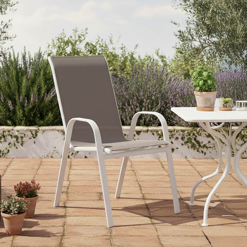 Πολυθρόνα Calan pakoworld μέταλλο λευκό-textilene καφέ