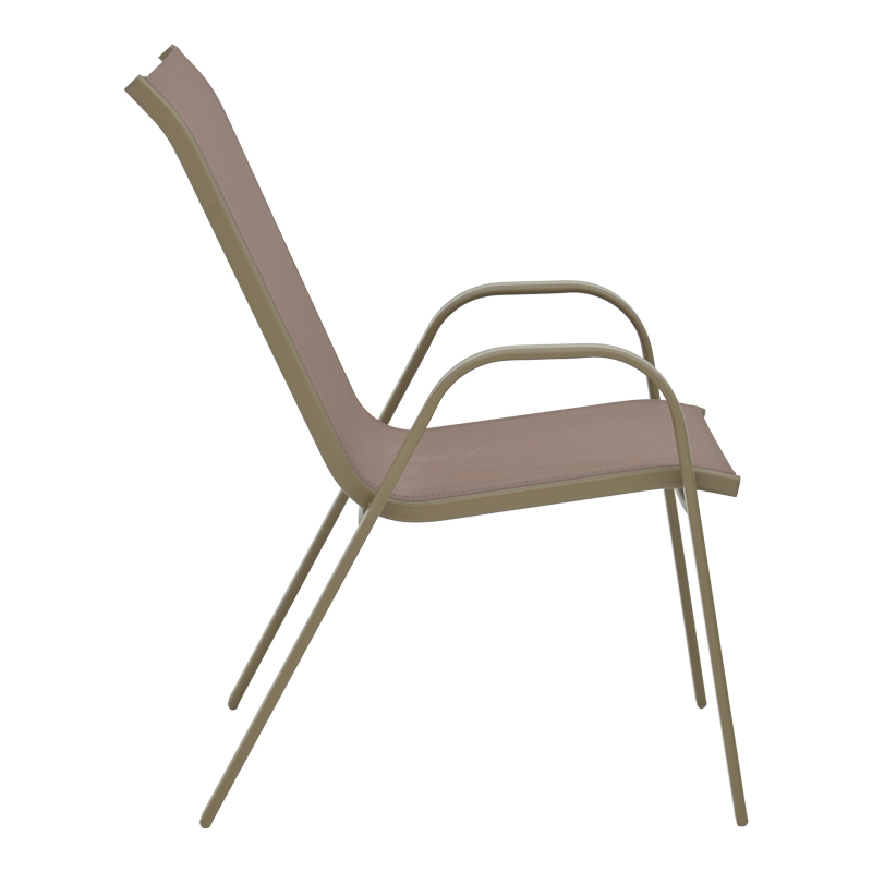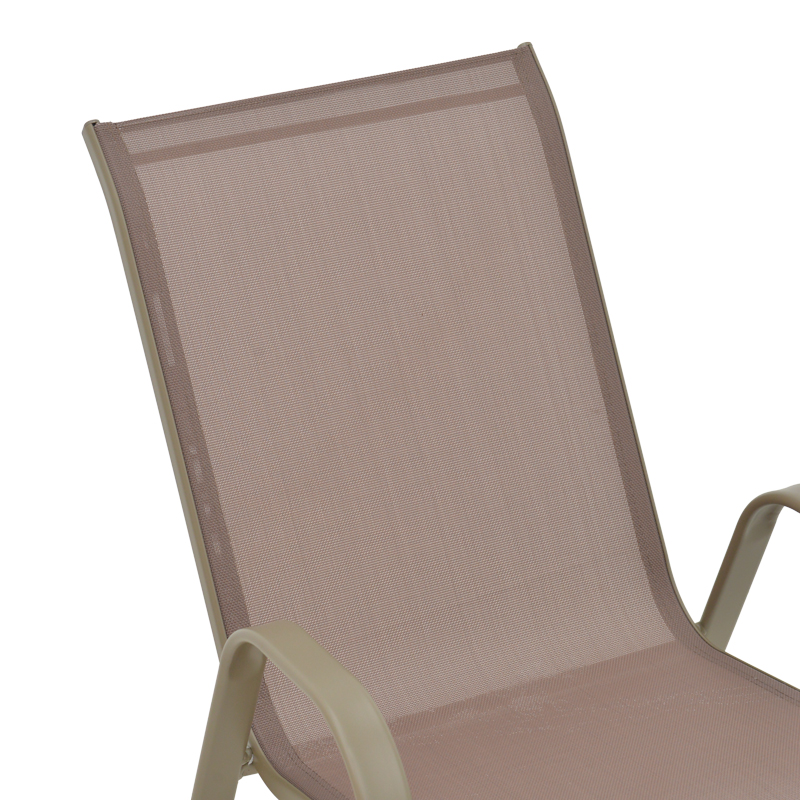 - Σταθερός σκελετός από μέταλλο με αντοχή στην καταπόνηση και στη φθορά. Κυρίως σώμα καρέκλας από εξαιρετικής ποιότητας textilene. Το textilene είναι ύφασμα μεγάλης αντοχής στην ηλιακή ακτινοβολία και την υγρασία ενώ παράλληλα αφήνει το δέρμα να “αναπνέει” δημιουργώντας έτσι άνεση στο κάθισμα.