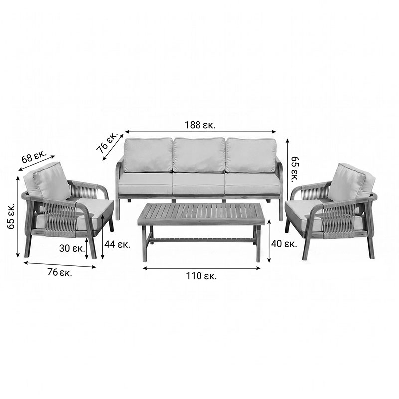 • Περιλαμβάνει μαξιλάρια για την έδρα καθώς και την πλάτη και οι πολυθρόνες και ο καναπές, προσφέροντας την άνεση που χρειάζεστε.