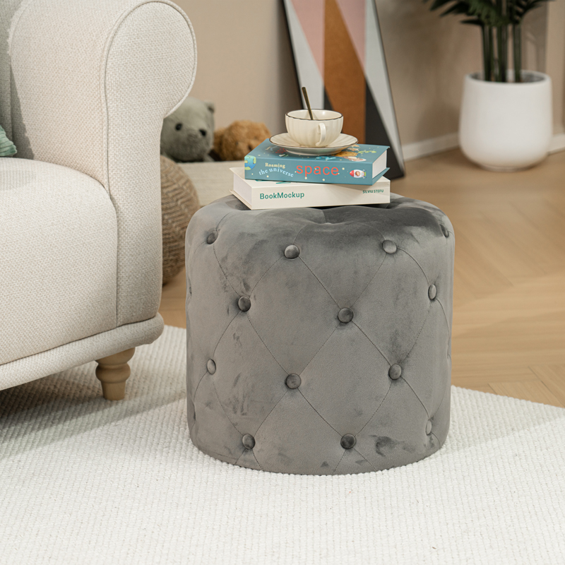 Σκαμπό-πουφ Seval pakoworld βελούδο ανθρακί Φ49×47εκ