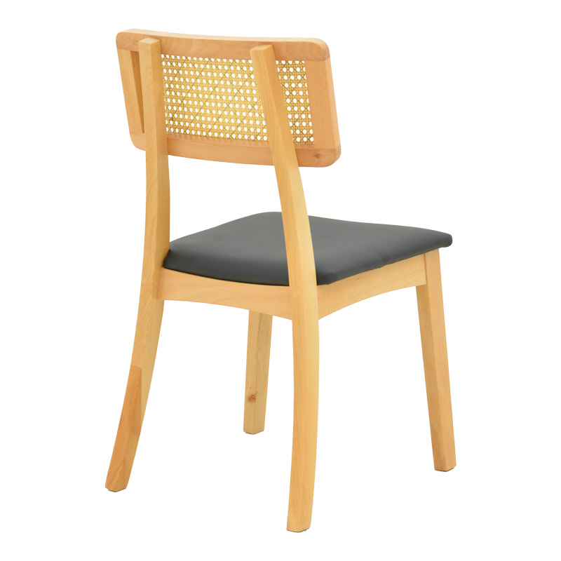 Καρέκλα Renna pakoworld ξύλο οξιάς σε φυσική απόχρωση με μαύρο pu μαξιλάρι 48x52x79εκ